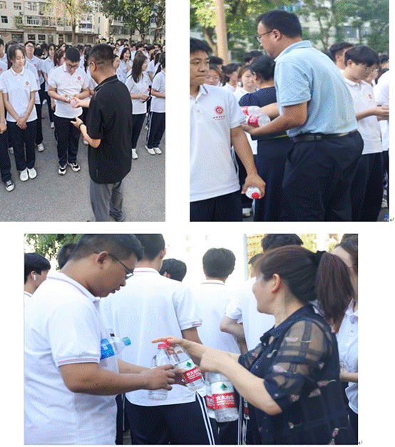 正值盛夏酷暑,操场上,阳光依然炽热,为了给同学们补充能量,学院领导们给同学们逐一发放了矿泉水等饮品。