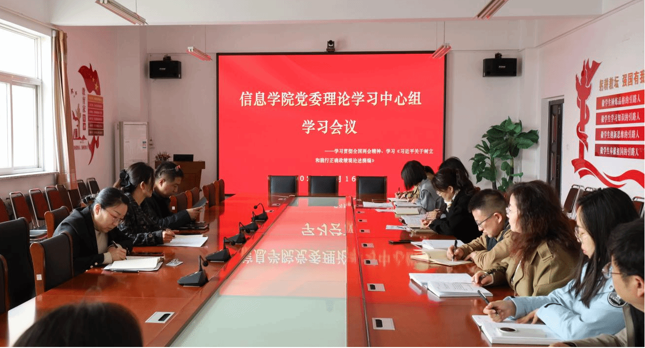 召开党委理论学习中心组(扩大)学习会议。深入学习贯彻2026年全国两会精神,学习研讨《习近平关于树立和践行正确政绩观论述摘编》。学院领导班子成员、党委委员、全体行政人员参加学习。会议由学院党委书记高萍主持。
