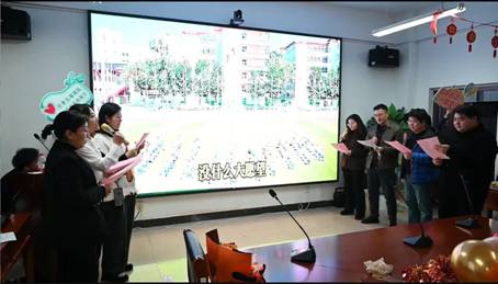 接下来的联欢会气氛热烈,大家齐聚一堂,在轻松愉快的氛围中交流互动。计算机科学与技术教研室老师们齐声合唱《上春山》,表达了大家对大自然和美好生活的热爱;信息管理与信息系统教研室全体老师带来的《舞蹈串烧》,让大家的情绪跟着一起跳动了起来;电子商务教研室合唱的《送别》,悠扬的歌声寄托着深情。此刻,每个人的脸上都绽放着灿烂的笑容,尽情享受着这来之不易、温馨美好的相聚时刻,欢声笑语交织成一幅动人的画面,在这方空间中留下了难忘的回忆。