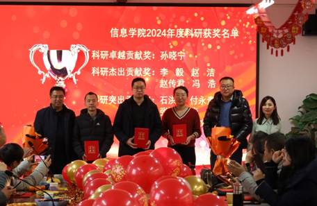 关于2024年度科研奖项评定的决定》,学院领导班子成员为获教师颁发了荣誉证书。